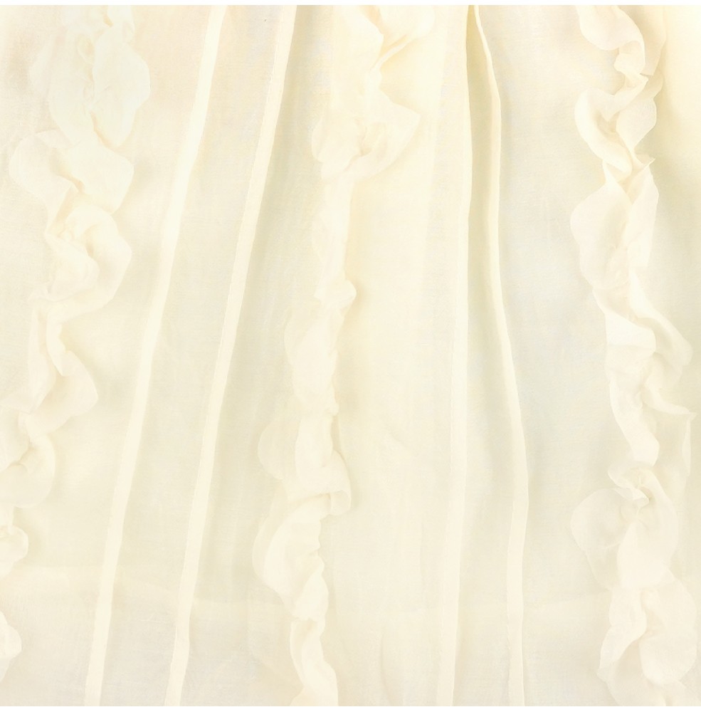 ➤ Pakaian direka dengan tulle berlapis berwarna krim dan perincian ruffle lembut untuk rupa yang halus dan mengalir