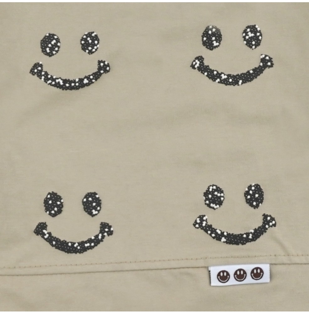 ➤ T-shirt kapas lengan pendek dengan grafik wajah tersenyum di bahagian hadapan
