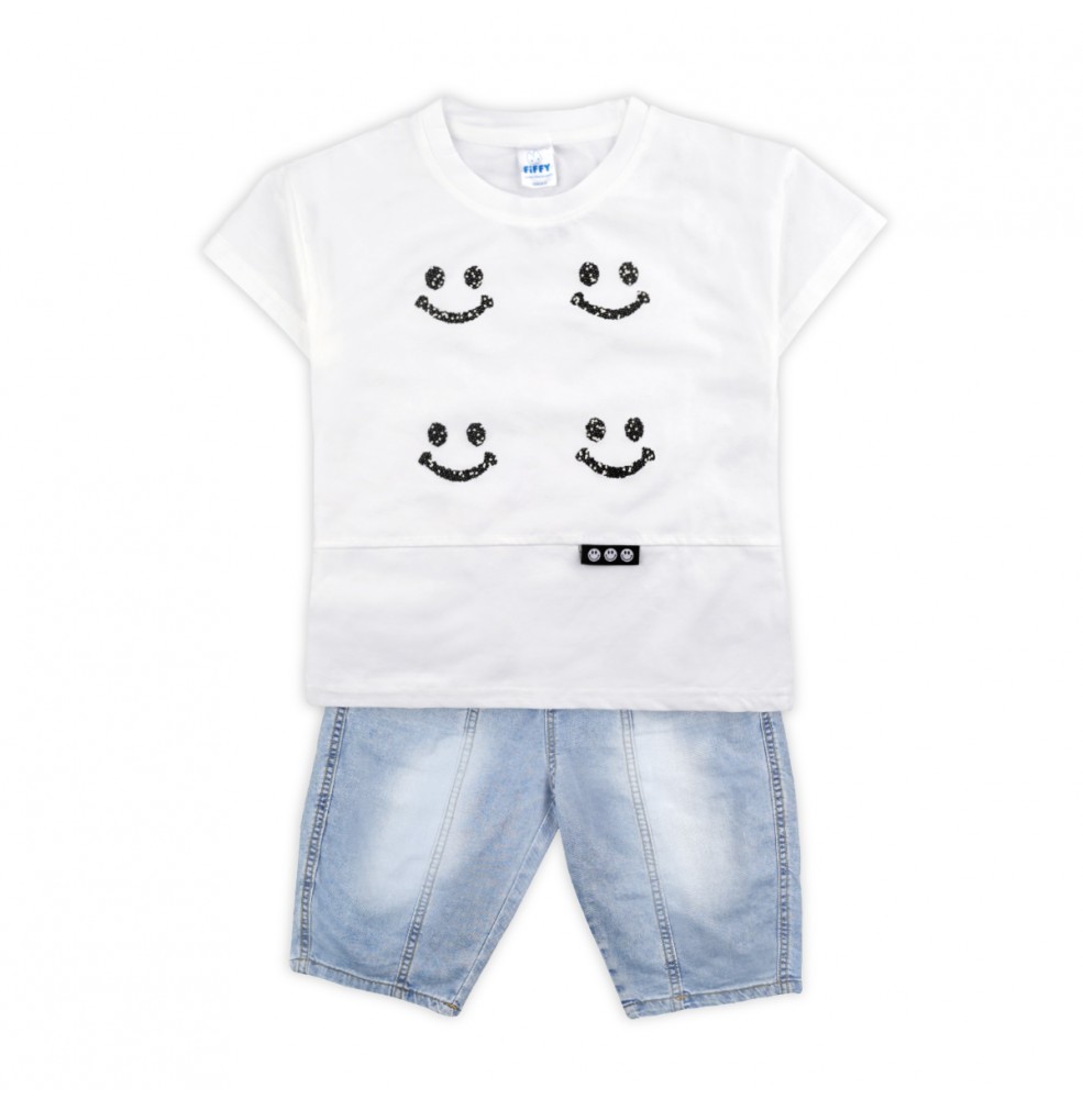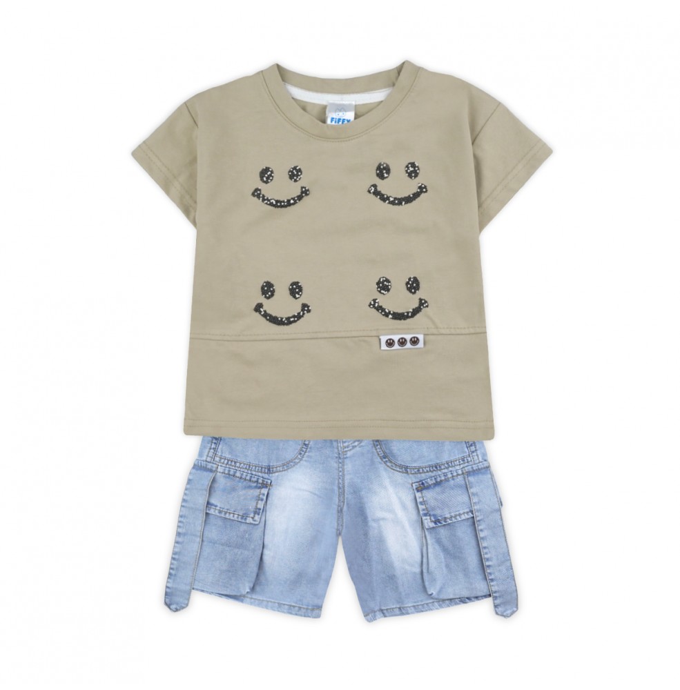➤ 2-piece casual set featuring a playful printed tee and comfy denim shorts