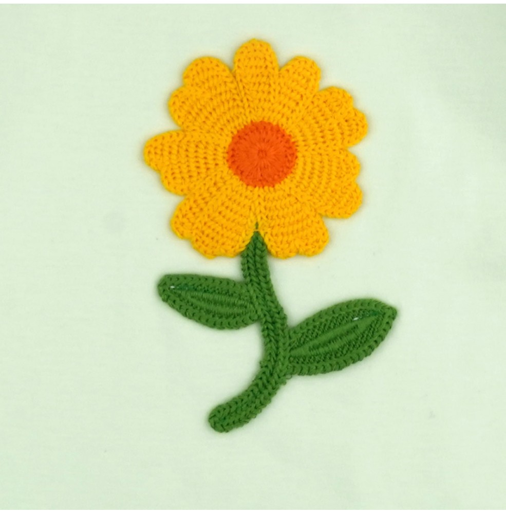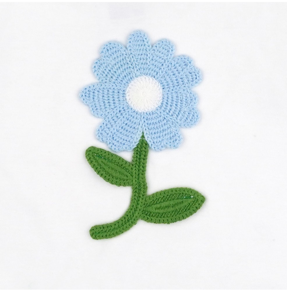 ➤ Baju atasan dengan tampalan bunga dan seluar denim.
