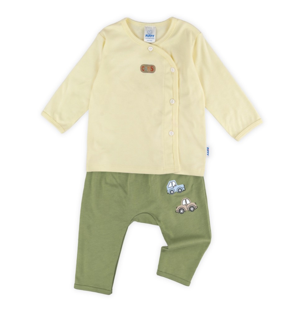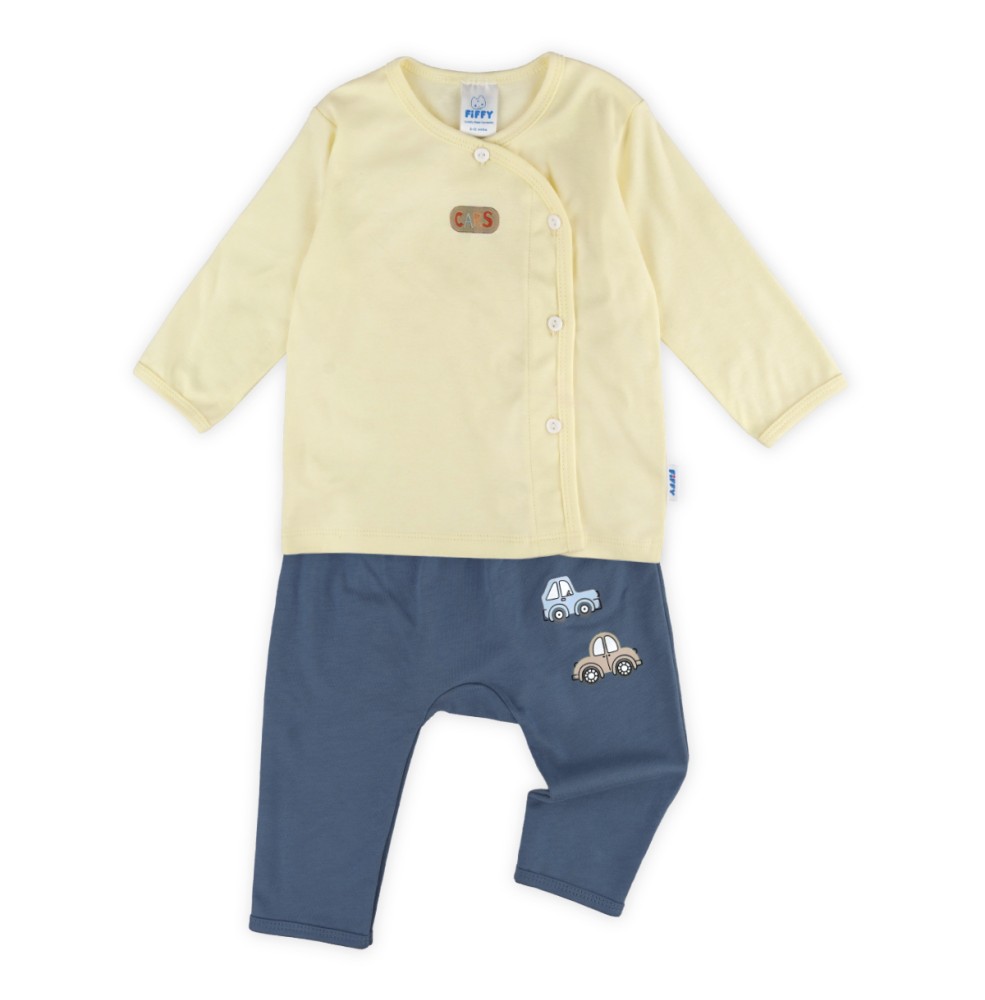 ➤ Set bayi 2 helai yang comel menampilkan baju lengan panjang berbutang di hadapan dan seluar yang sepadan