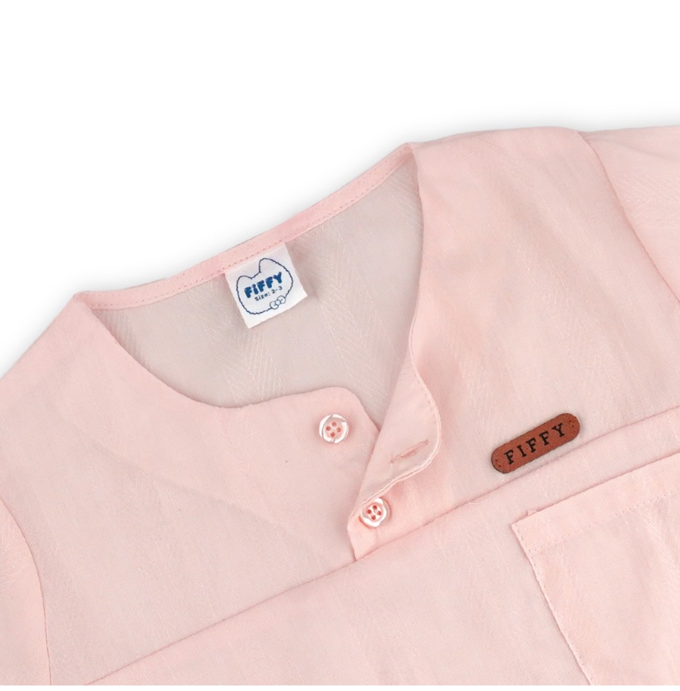 ➤ Casual kids’ woven top featuring a clean, minimalist silhouette