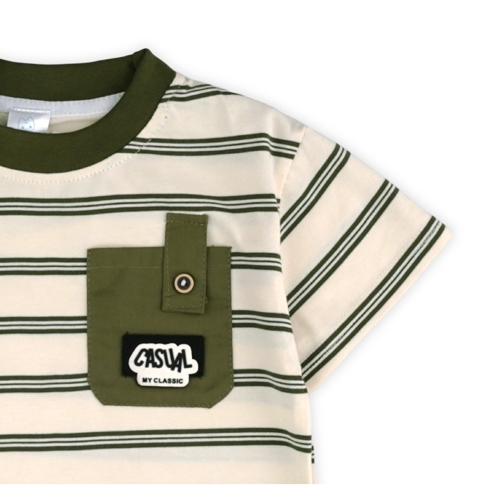 ➤ Set gaya kargo 2 helai: baju berjalur + seluar pendek kargo