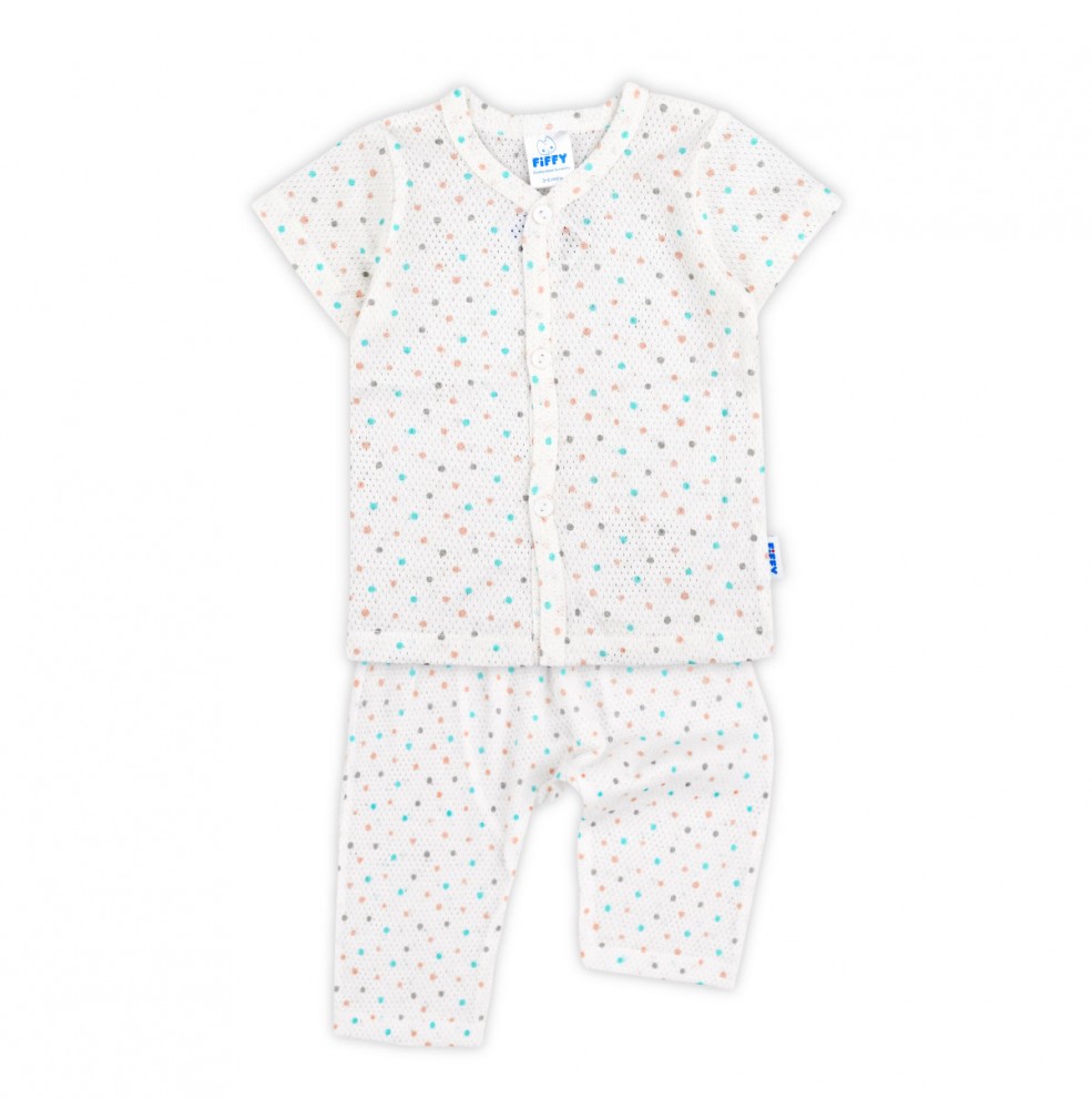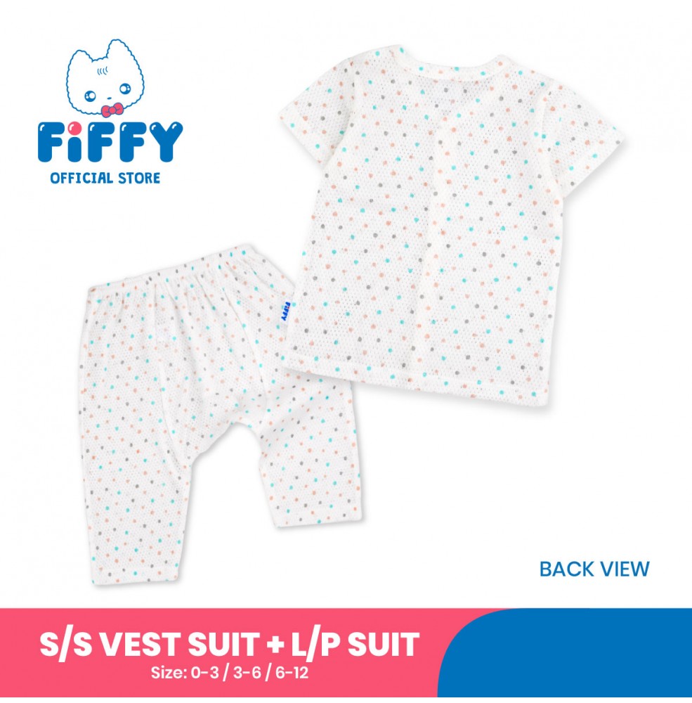 FIFFY COLOUR DOTS BAJU BAYI SHORT SLEEVE VEST + LONG PANT SUIT (4325011)