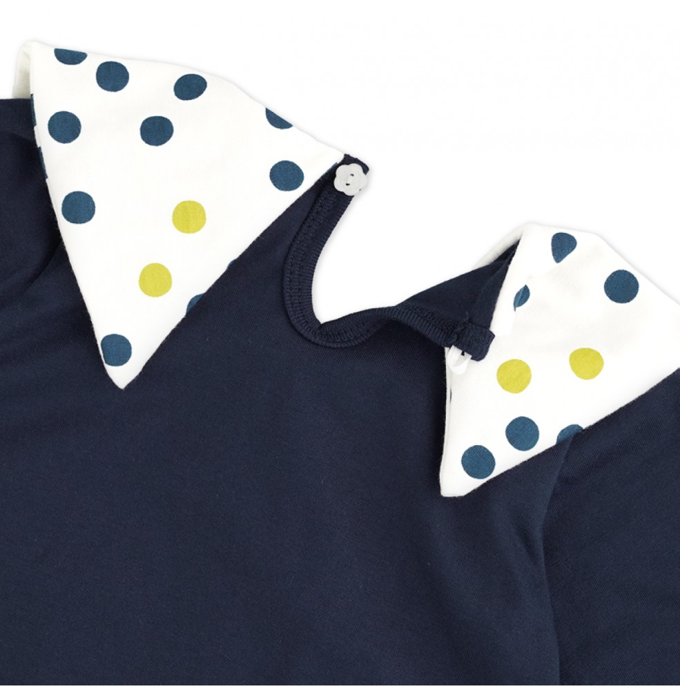 ➤ Tear drop button fastening at the back.