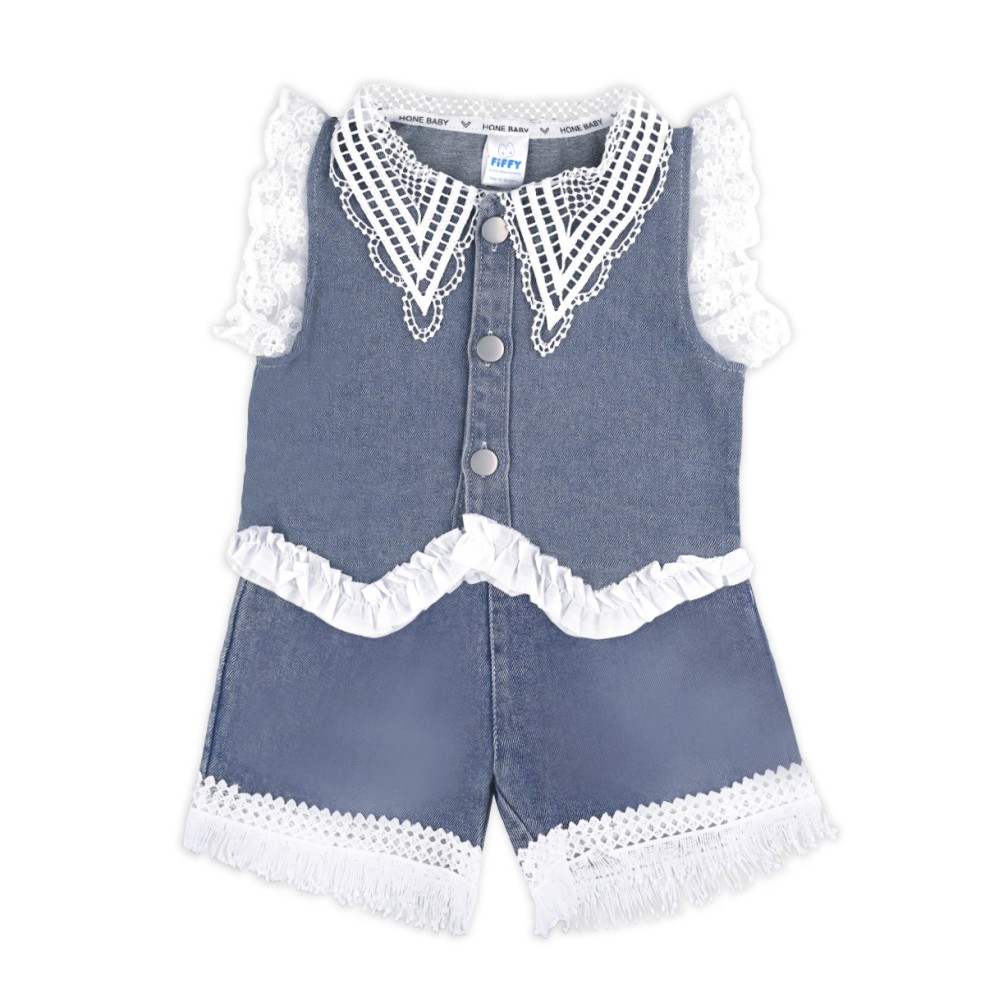 ➤ Set renda denim 2 keping: baju tanpa lengan & seluar pendek