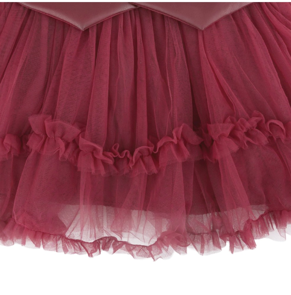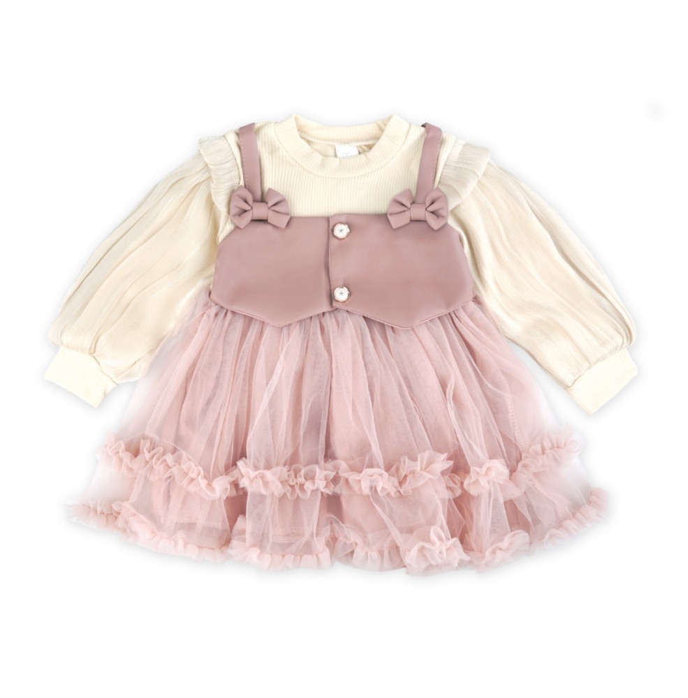 ➤ Elegant girls’ dress featuring a soft long-sleeve inner top layered with a tulle pinafore dress