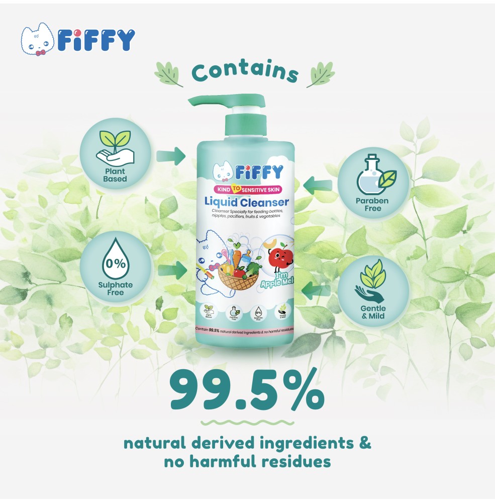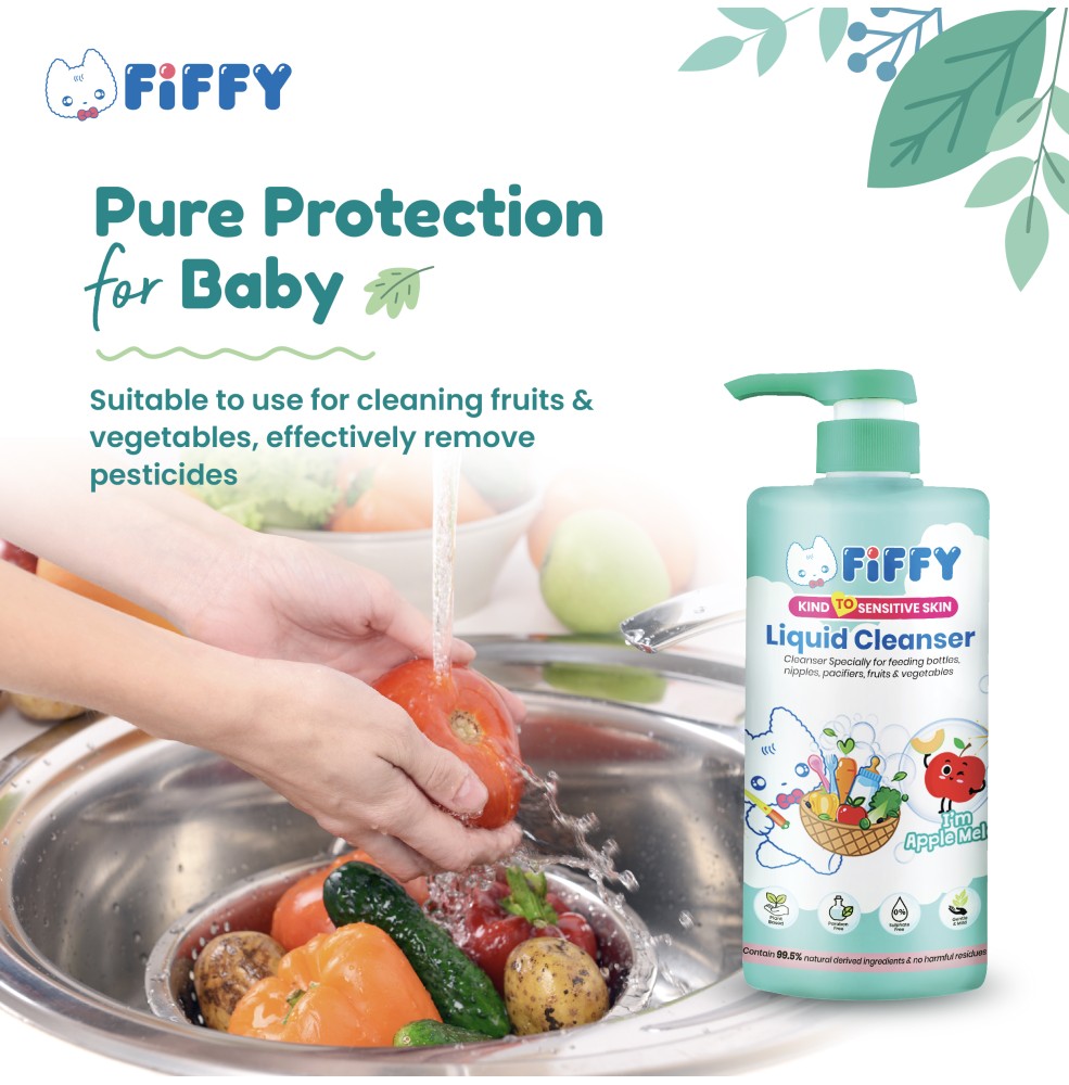 ➤ Dirumuskan dengan lembut dengan surfaktan berasaskan tumbuhan dan rasa melon epal terutama untuk botol makan, pacifiers, buah-buahan dan sayur-sayuran.