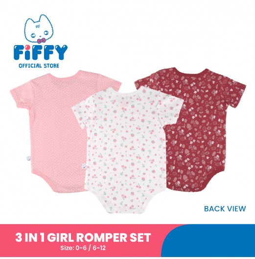 FIFFY SET BAJU BAYI PINKY FRUITS 3 IN 1 GIRL ROMPER SET (CM3623004)
