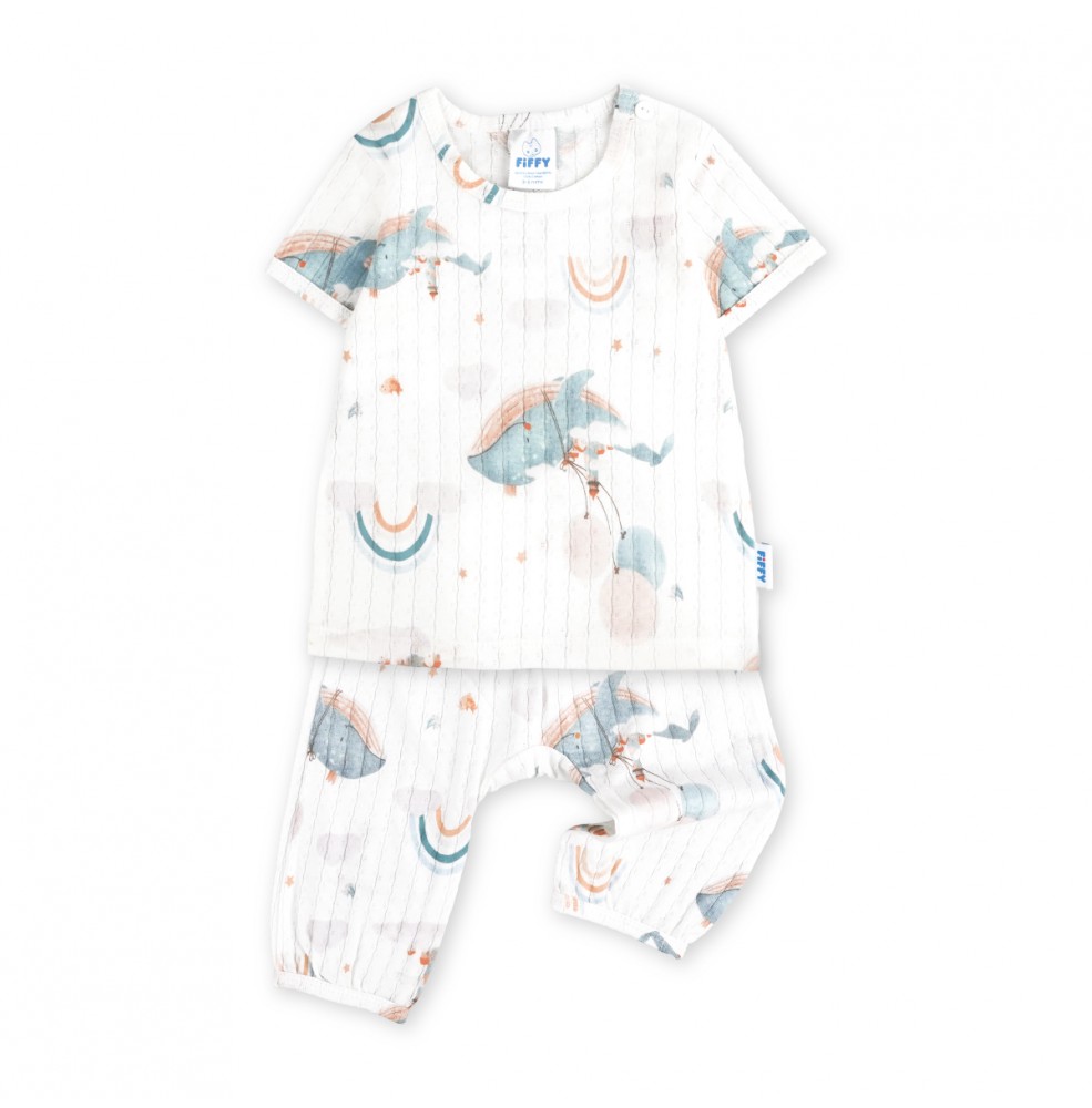 FIFFY RAINBOW WHALE BAJU BAYI SHORT SLEEVE + LONG PANT SUIT (4225008)