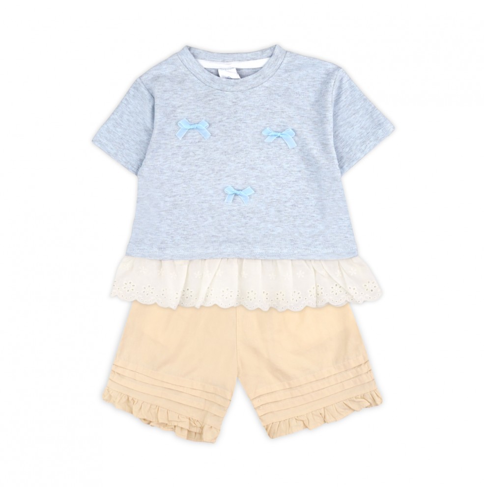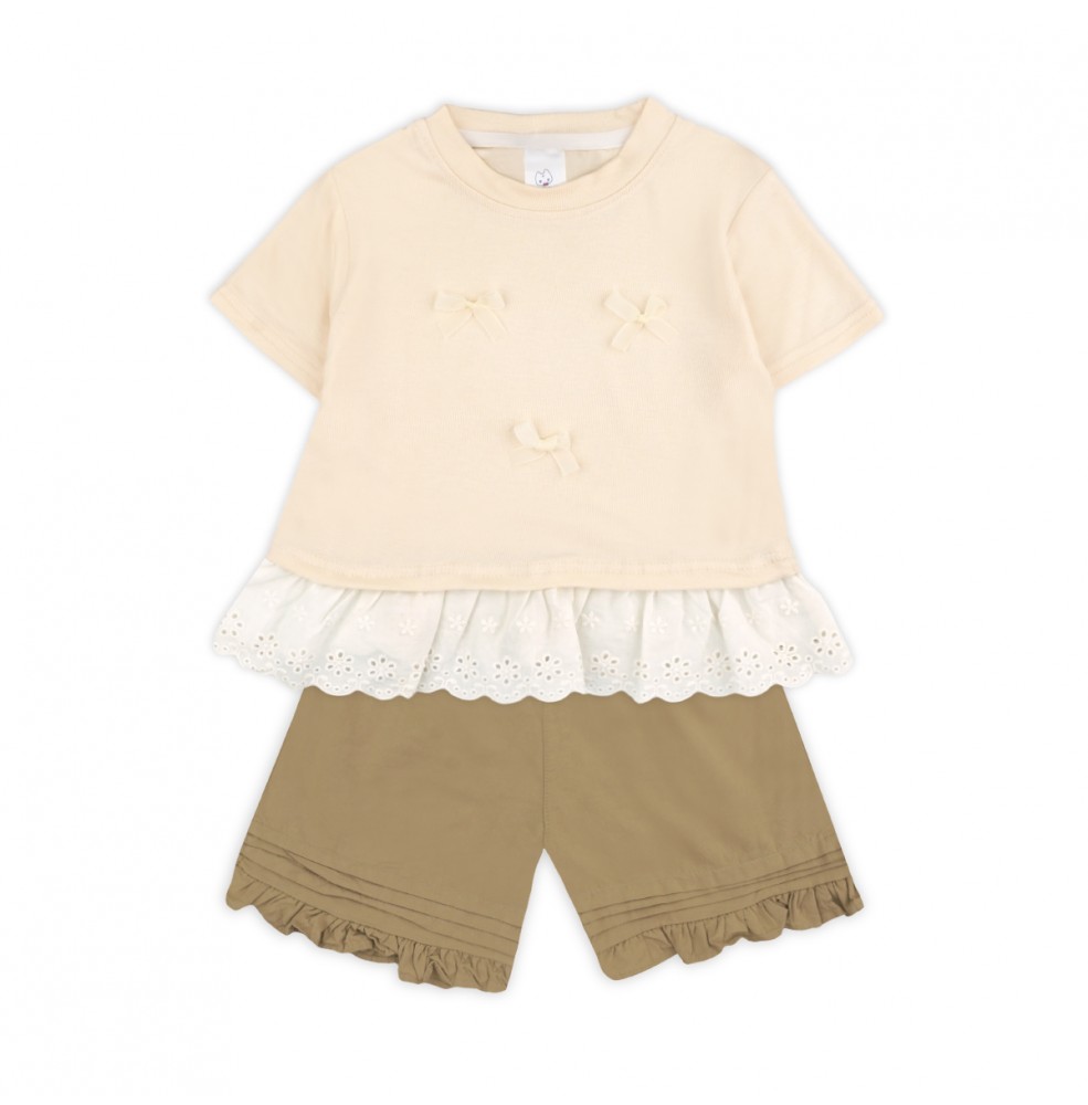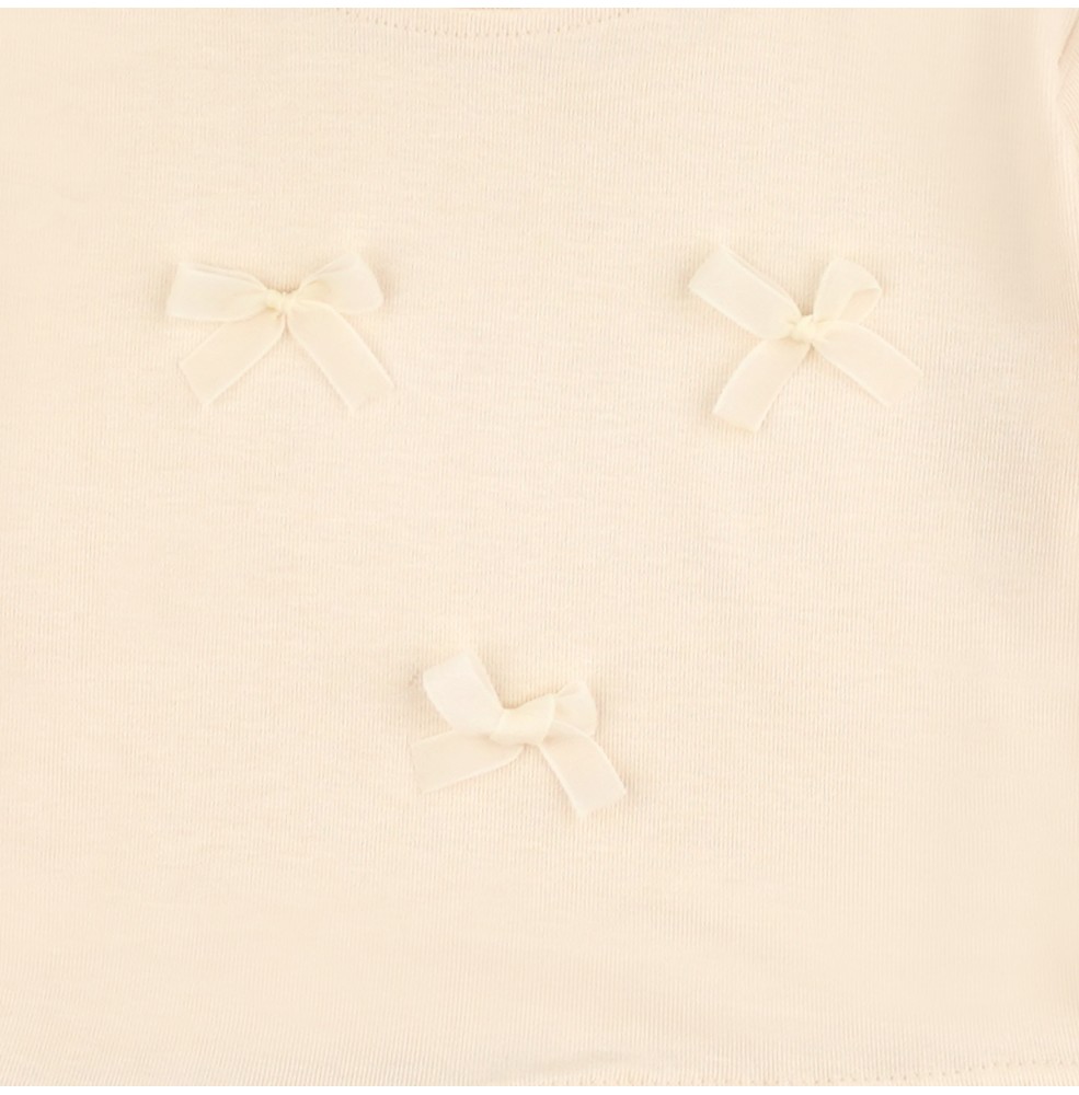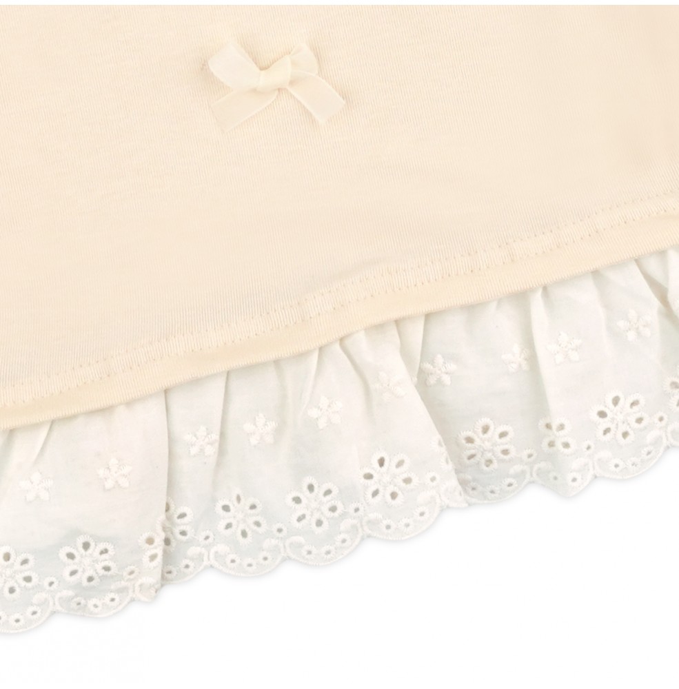 ➤ Short sleeve top with embroidered lace hem and delicate bow accents
