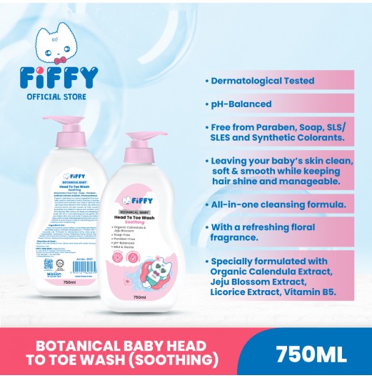 FIFFY MANDIAN BAYI SOOTHING BOTANICAL BABY HEAD TO TOE WASH (750ML BOTTLE / 600ML REFILL) (2527/98-14-008/FO23003)