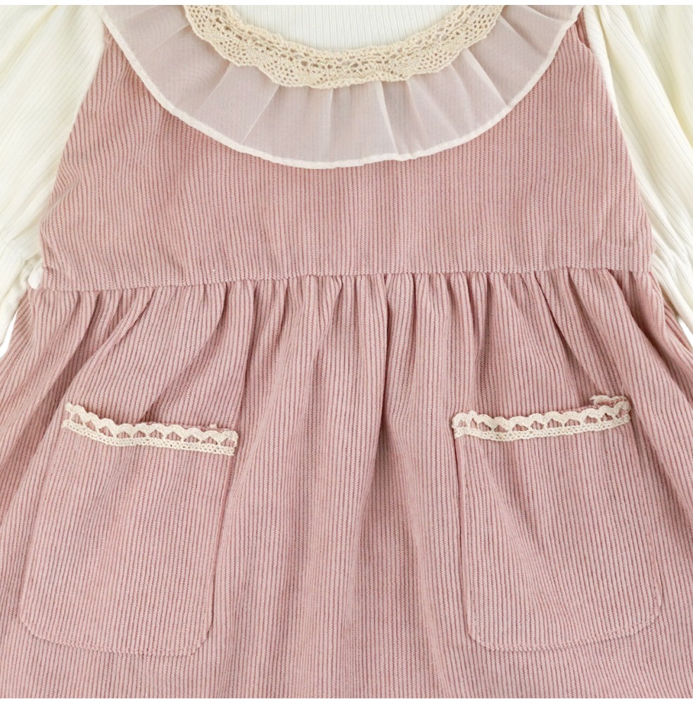 ➤ Elegant girls’ dress featuring a layered-look blouse design with pinafore-style skirt
