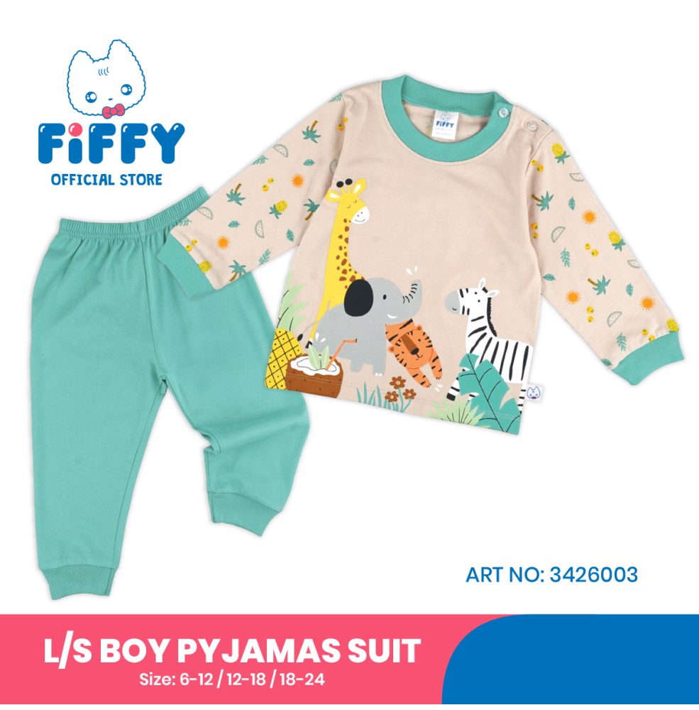 FIFFY TROPICAL FRIENDS LONG SLEEVE BOY PYJAMAS SUIT BAJU BAYI (3426003)